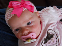I can't believe Reilynn is almost 3 months old. She is so much fun. She is very patient with the crazy at our house, and she is tough enough to handle 6, 3, and 1 1/2 year olds loving her. I am trying to remember to take pictures of her, it is hard! But thanks to blogs and grandmas, I am getting some taken.